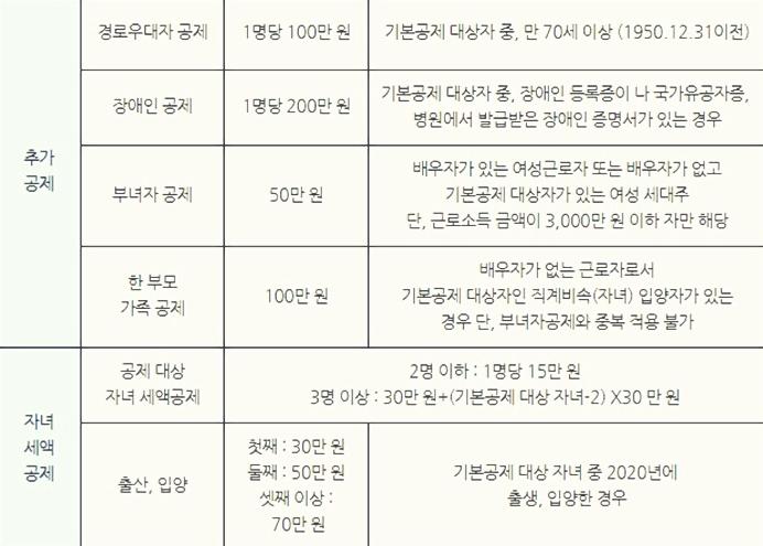연말정산 부양가족 인정공제는 크게 기본공제와 추가공제로 나눠집니다. 기본공제는 근로자 본인과 배우자와 같이 생계를 같이하는 부양가족을 말합니다. 추가공제는 기본공제대상자 중에서 경로우대, 장애인, 부녀자, 한부모를 말합니다.