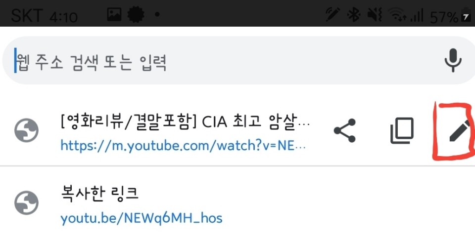 크롬브라우저에서를 실행시켜주시면 주소입력창이 나오고 복사된 링크주소가 보입니다. 링크주소뒤쪽 연필그림을 클릭하시면 링크주소를 수정할수가 있습니다.